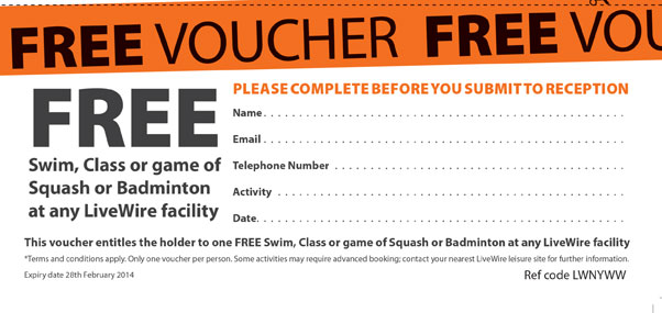 FREE swim, class or game of squash or badminton at LiveWire