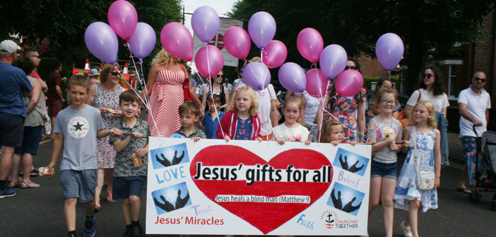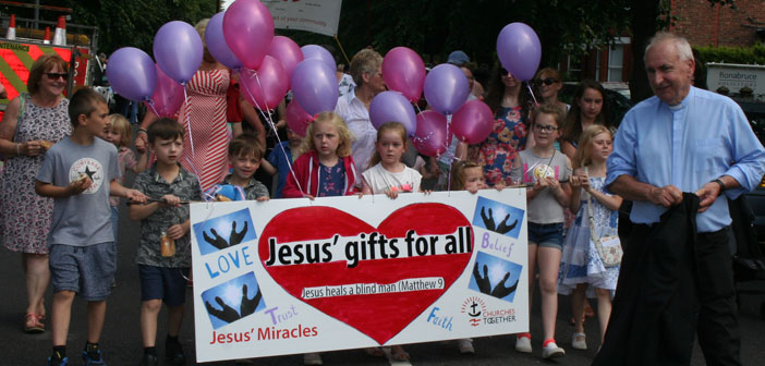 The various churches and schools then set off on their annual walk through the village.