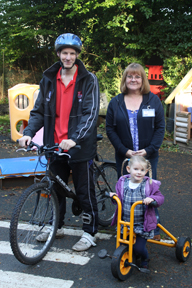 A LYMM dad defied storms which lashed the country to complete a 300-mile charity bike ride to raise money for a pre-school.