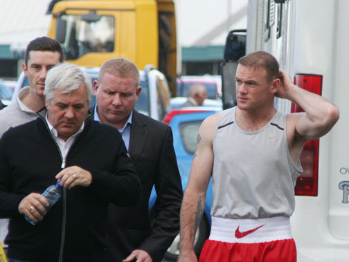 SOCCER star Wayne Rooney arrived at a Warrington based boxing club – complete with TV crew and an army of security men.
