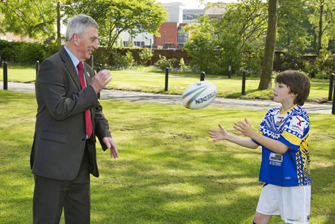 COUNCIL staff at Warrington donned their best Samoan colours to get up close and personal with the Rugby World Cup Trophy.