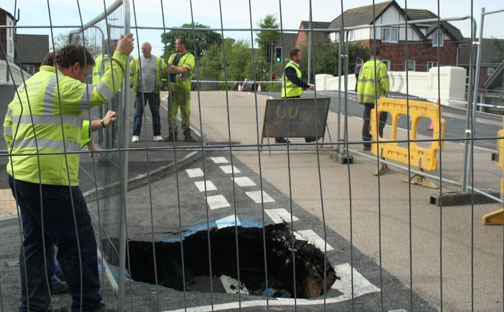 MOTORISTS are still being urged to avoid travelling along the A49 London Road after a sewer collapse caused a huge hole on London Bridge near Stockton Heath, Warrington, although the road is now open with a temporary traffic light system in operation.