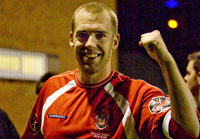 TWO goals from Skipper Mike Tomlinson secured all three points as Warrington Town defeated Mossley 2-0 at Cantilever Park.