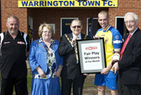 on hand to help Warrington Town celebrate receiving the Fair Play Award